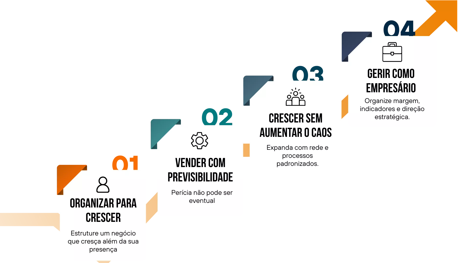 Empresários que já participaram da primeira edição saíram com clareza sobre como organizar a operação, estruturar a oferta e reduzir a dependência da execução direta para crescer com mais previsibilidade.