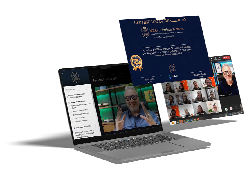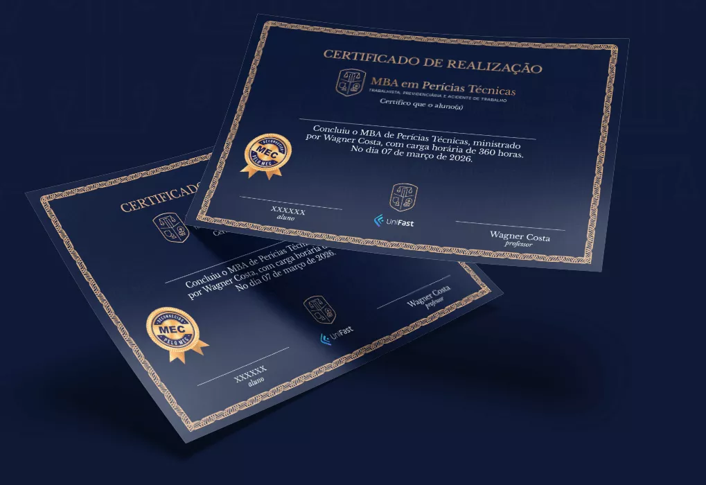 Ao concluir o MBA, você receberá o certificado de Pós-Graduação Lato Sensu, emitido pela Faculdade UNIFATELOS – instituição com nota máxima no MEC – em parceria acadêmica com a UNIFAST e a Perícia Sem Segredo.